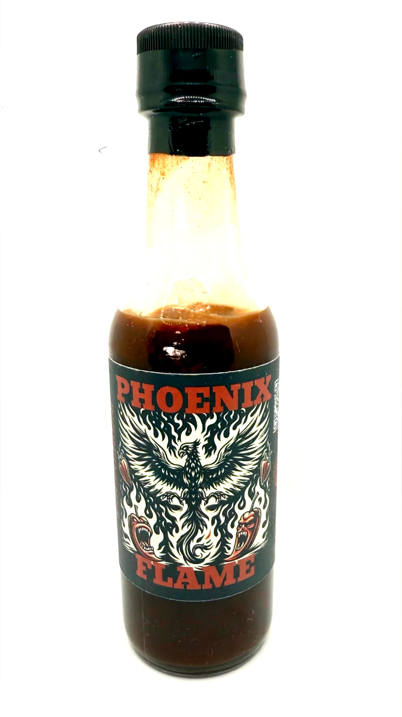 Made from Guajillo chili, Pasilla chili, Carolina Reaper, and cooked in the fire of the mighty Phoenix, this a hot sauce for the ages. Can you handle the heat, or will you be burned by the flames of the Phoenix?